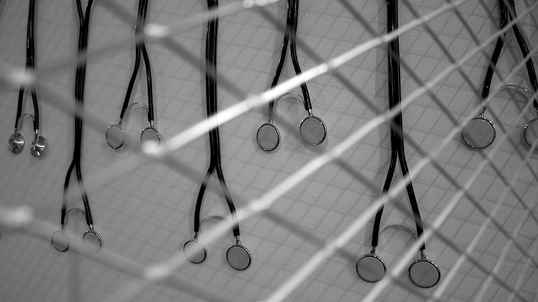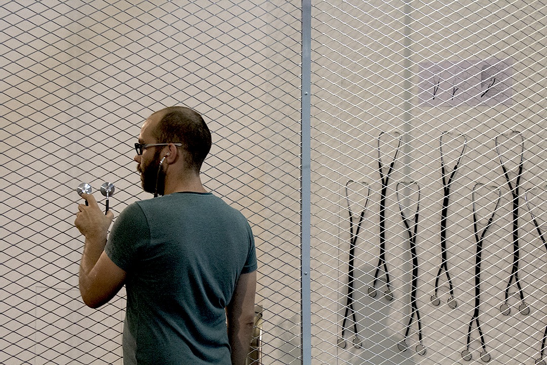 Using a series of electro-dynamic transducers, the voices of composers lecturing at Darmstadt since 1946 travel through the fence to meet the anonymous voices of street vendors, informal preachers, institutional announcers and street artists preserved in Archivo PAIS. Before playing them, a computer software analyses their prosody to find similarities in the way these different voices speak and pair them together. By leaning modified stethoscopes against the fence, the audience can listen to the sounds of both archives – the personal and the historic – as they migrate through its surface.